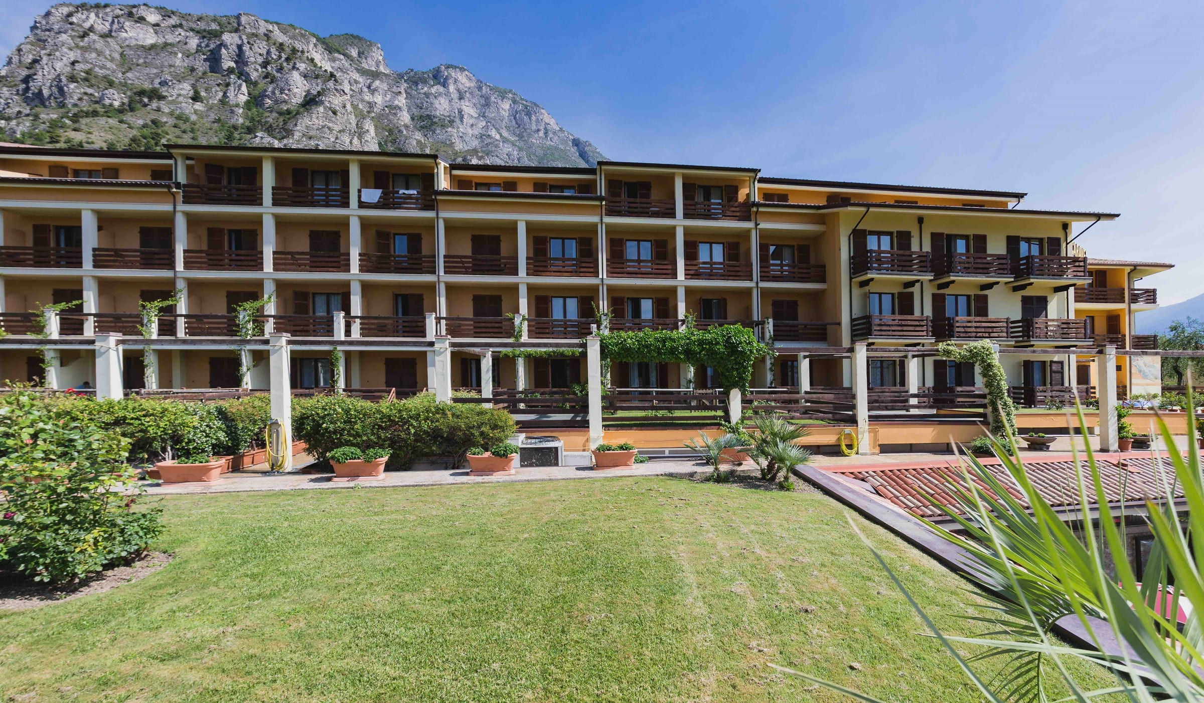 Mitten im Land der Zitronen liegt Ihr Vier-Sterne-Hotel mit Blick auf den See in Limone sul Garda, einem schmalen Landstreifen am Fuße der hohen Klippen mit Blick auf das nördliche Ufer des Gardasees, nahe Riva del Garda.