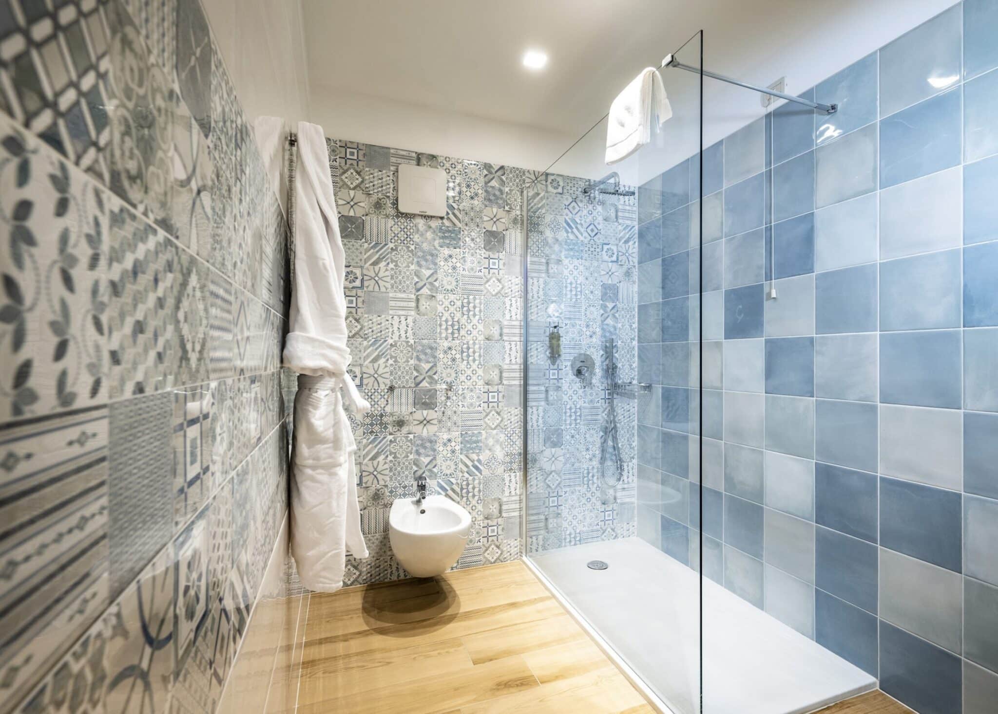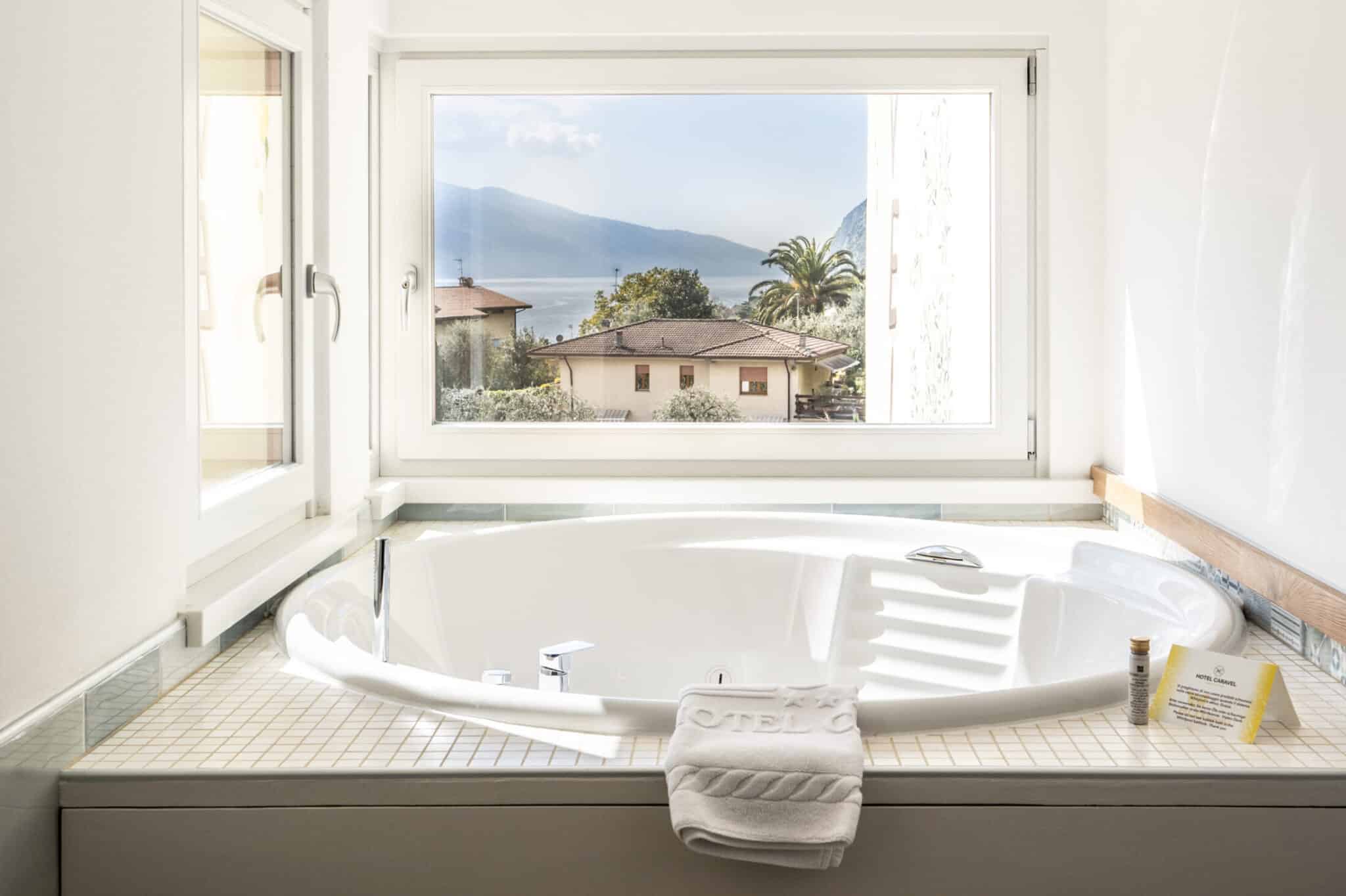 - Badezimmer mit Dusche und Panoramische Whirlpool-Badewanne, Haartrockner, Pflegeset, Kosmetikspiegel, Bademäntel