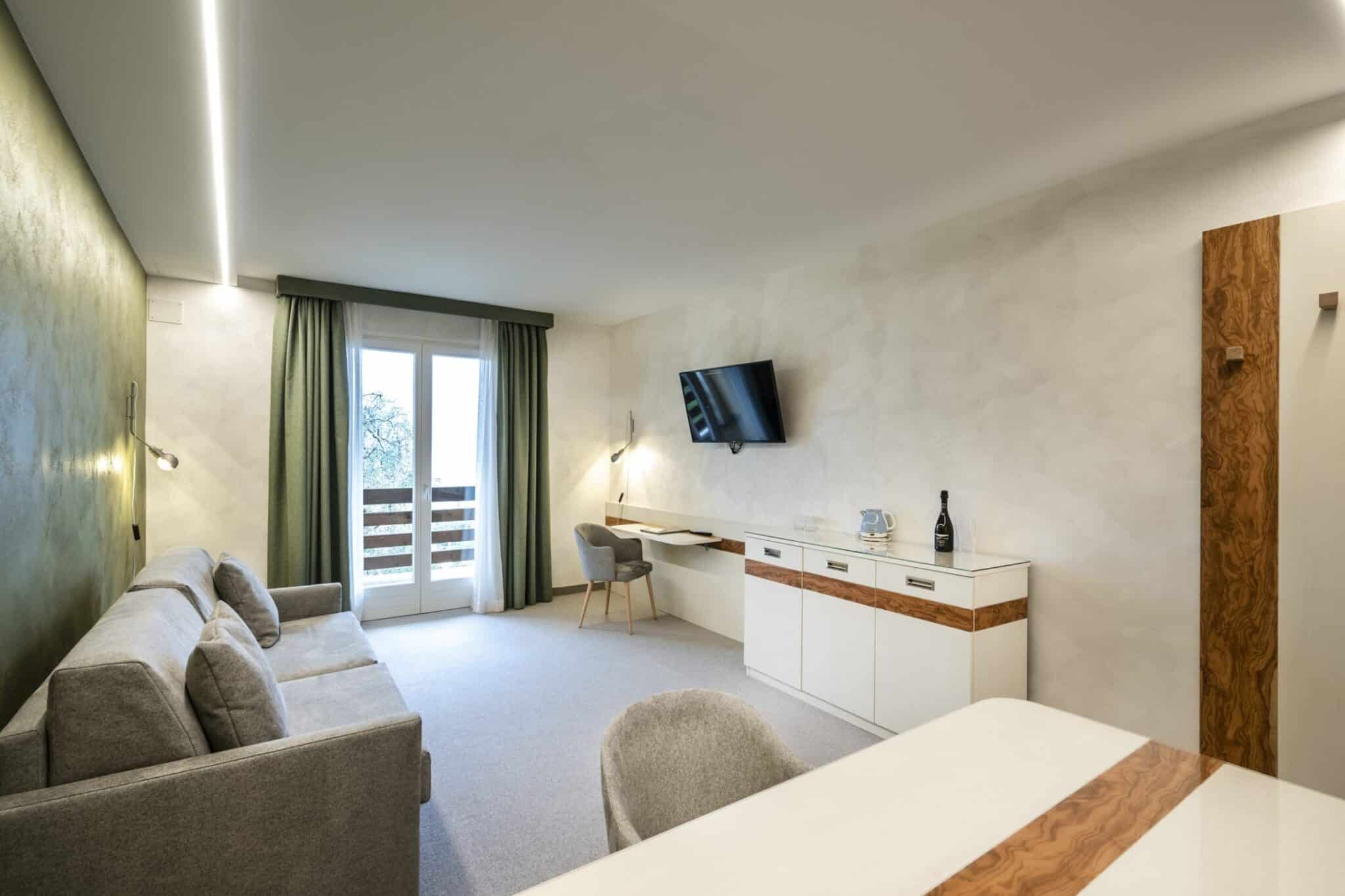 Im obersten Stockwerk des Haupthauses, in zentraler und ruhiger Lage, bietet La Casetta ein einzigartiges Erlebnis aus Privatsphäre und Schönheit. Dank der Ausrichtung an zwei Seiten des Gebäudes (Ost und Süd) genießt die Suite einen spektakulären Panoramablick auf den See, der jeden Moment des Tages vom Sonnenaufgang bis zum Sonnenuntergang begleitet.